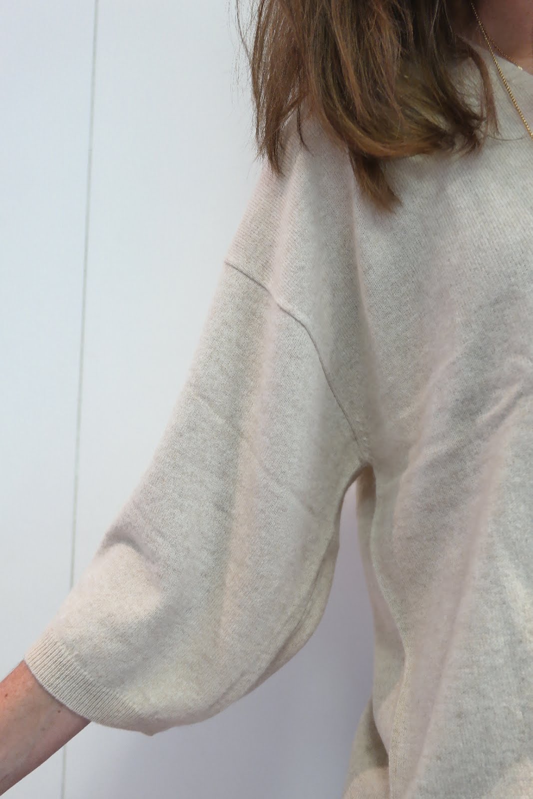 Aqui está o look com a outra camisola de caxemira.